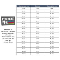 Quel(le)s sont les diamètres / dimensions internes des tubes ?